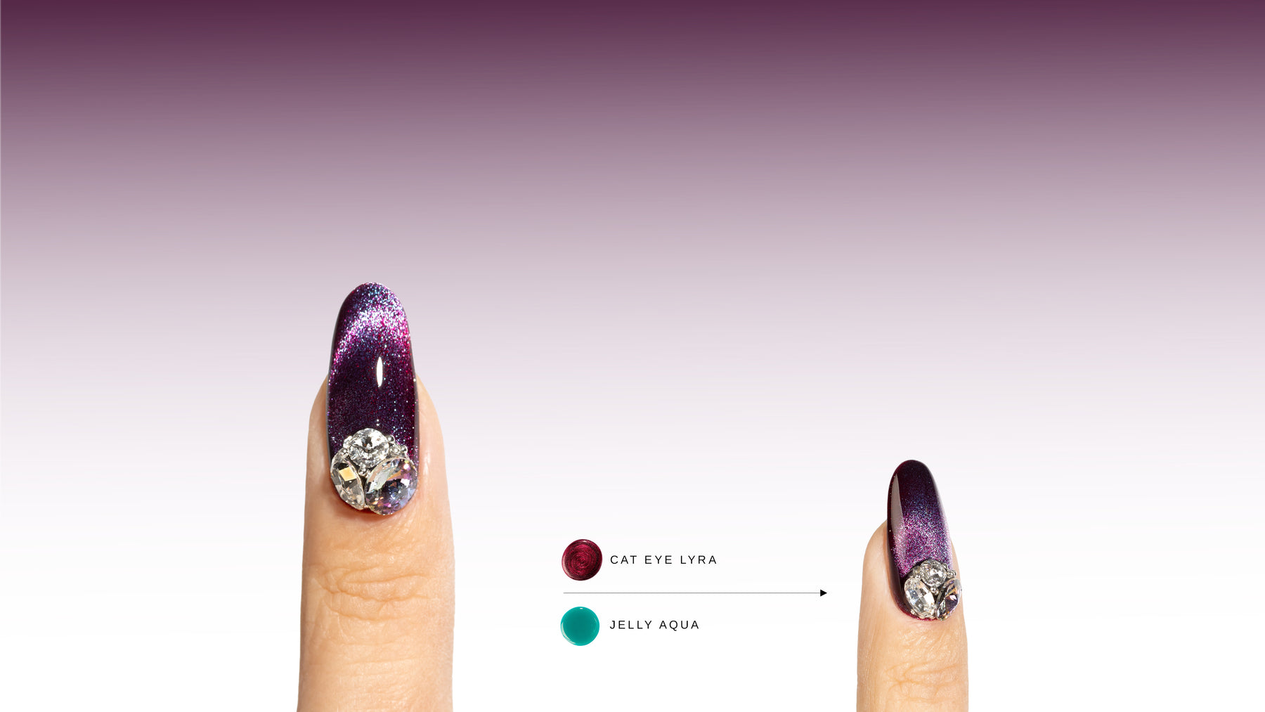 Aplicados en el efecto magnético, los esmaltes Jelly modifican el color base, crean nuevos matices y generan superposiciones ópticas sorprendentes.